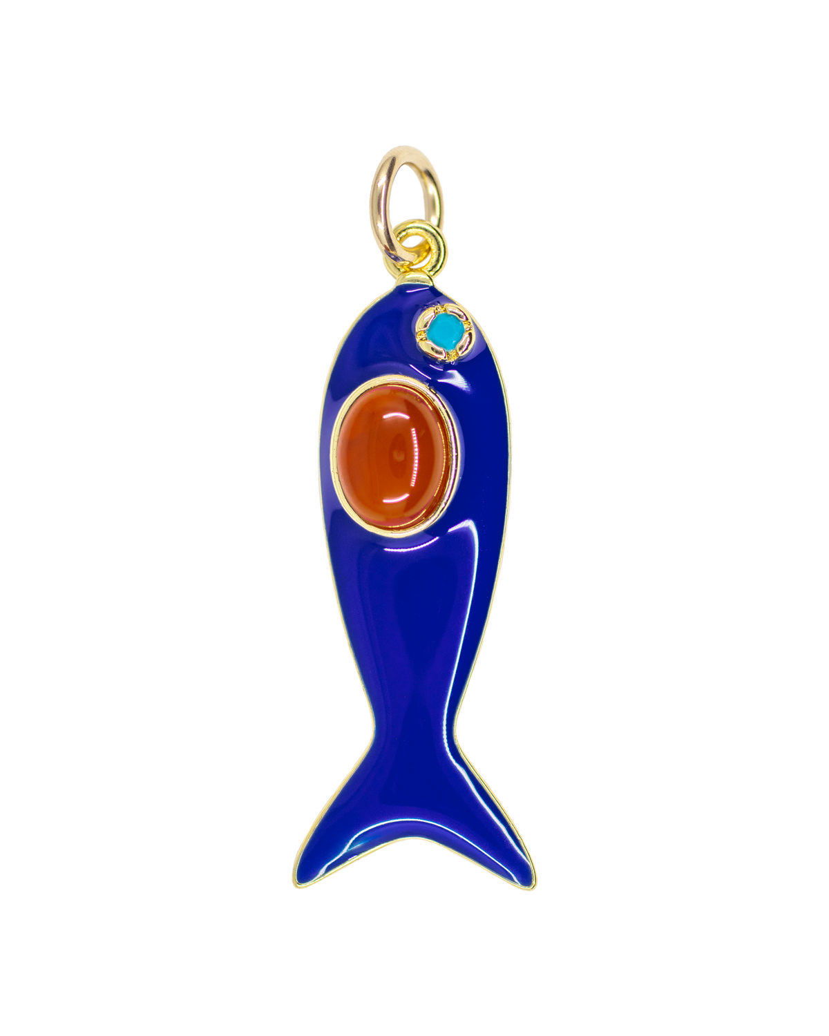 This blue enamel fish charm (with inlaid turquoise and carnelian) is already a fan favorite! Easy to wear alone or with other charms.