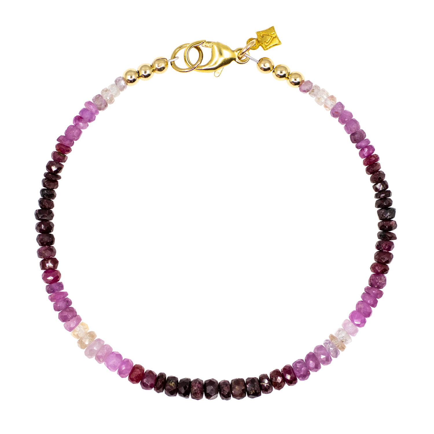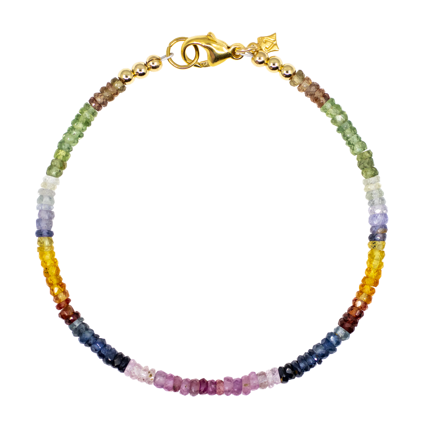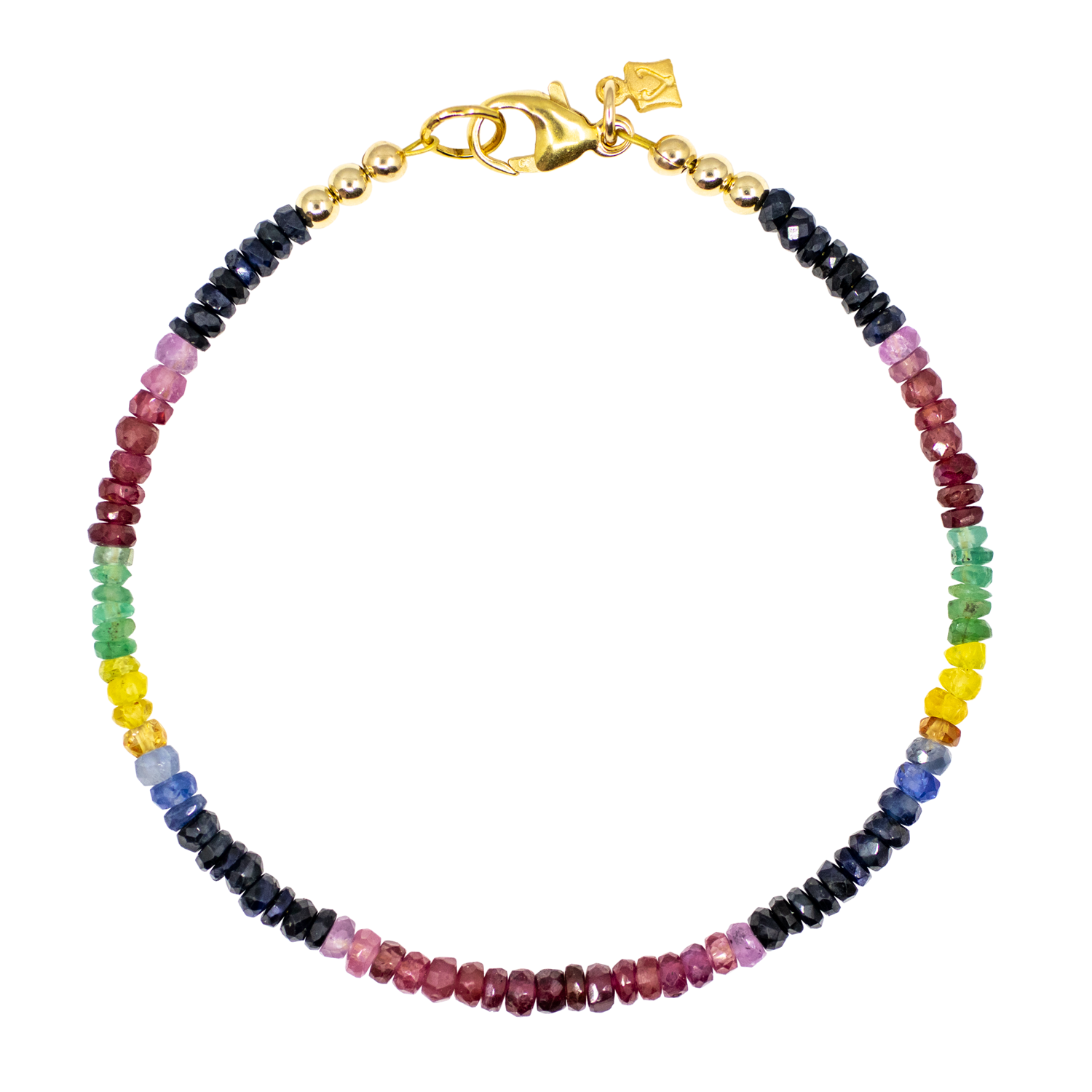 This bright beautiful bracelet is made of 4mm faceted sapphires / rubies / emeralds and is finished with a 24k gold filled lobster claw clasp.